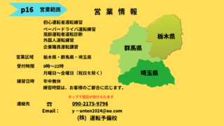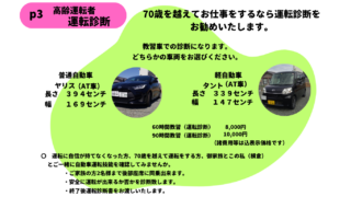 未分類 各種運転練習 初心運転者の方やペーパードライバーの方へ、格安で親切丁寧にアドバイスを致します。運転に自信が持てない方や10年以上も運転していない方にも安心して練習出来るように、二回目からは、さらにお得な価格設定になっています。 2026.03.04 未分類